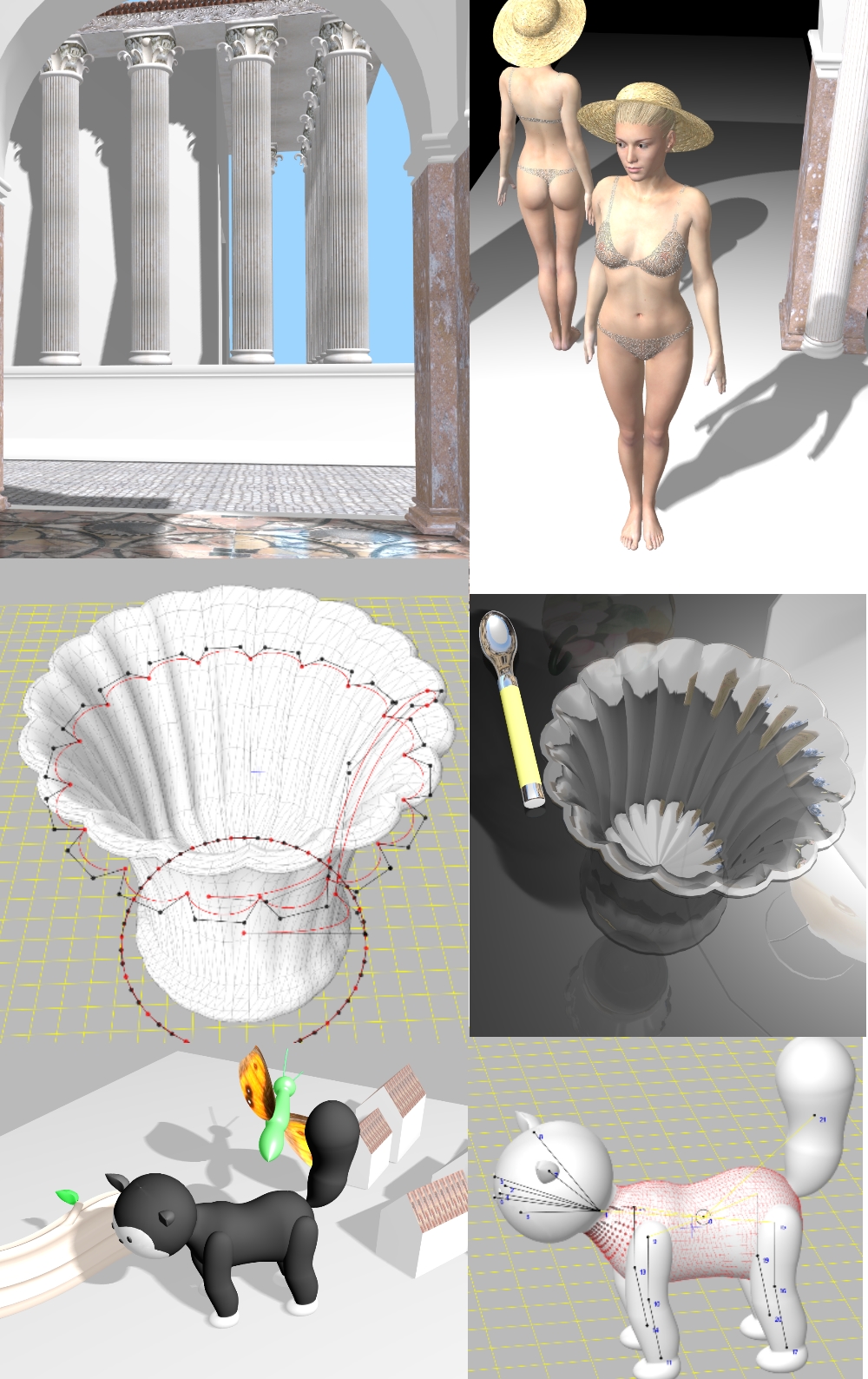 - Reflections, transparencies, bump mapping, water effects